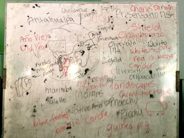 1. Love this. I thought I was the only one who had ever written blue footed boobie on a whiteboard in Indonesia. Or drawn a map of the world. Looks like your English club is an Americas Club!