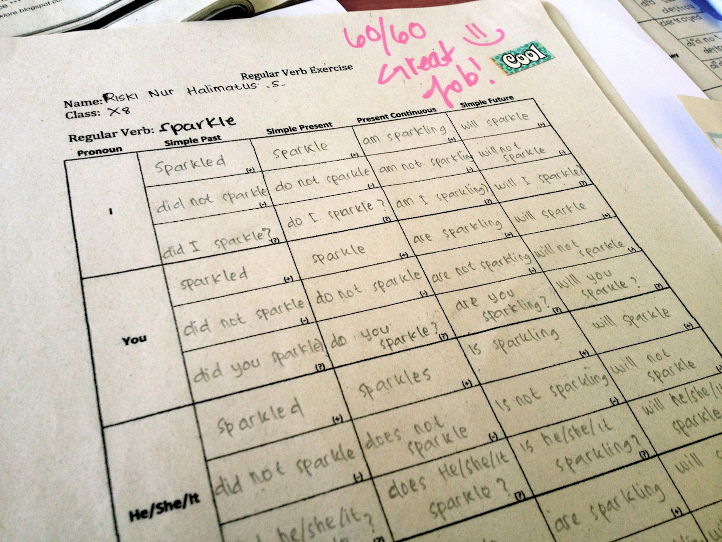 Regular Verb Exercise Published October 24, 2012 at 1440 × 1080 in Teacher Problems, #3 Teacher Problem: coming up with a regular verb on the spot can lead to receiving an exercise that appears to be the internal monologue of Edward Cullen’s existential crisis.