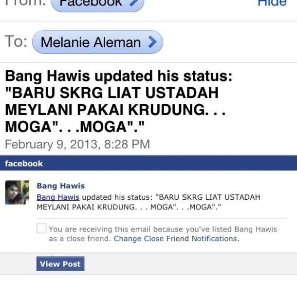 Teacher Problem: You may do something crazy (i.e.: wear a jilbab to a public event) and students will update their Facebook and talk about you.