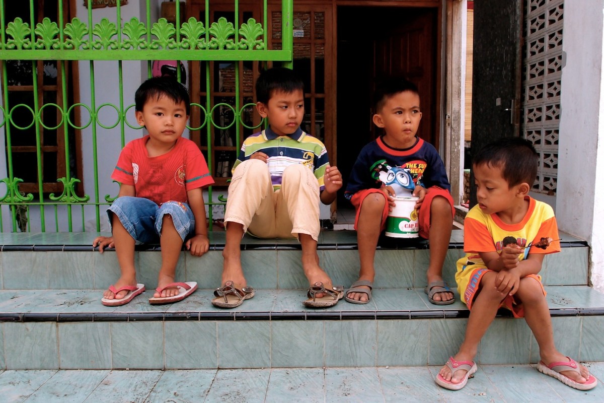 Kids Eating Sate Published October 18, 2013 at 1440 × 960 in Idul Adha and Other Thoughts on Eating Animals ← Previous Next → Neighborhood kids enjoying a special treat of sate kambing.