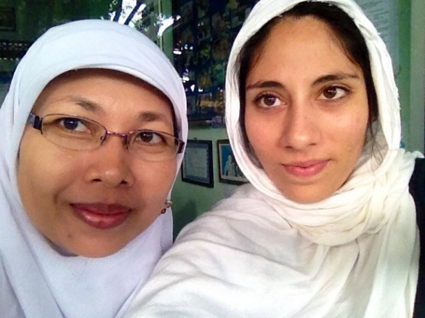 Bu Endang, a physics teacher and last year’s IGLOW treasurer, and me dressed up for a religious activity at our madrasah.